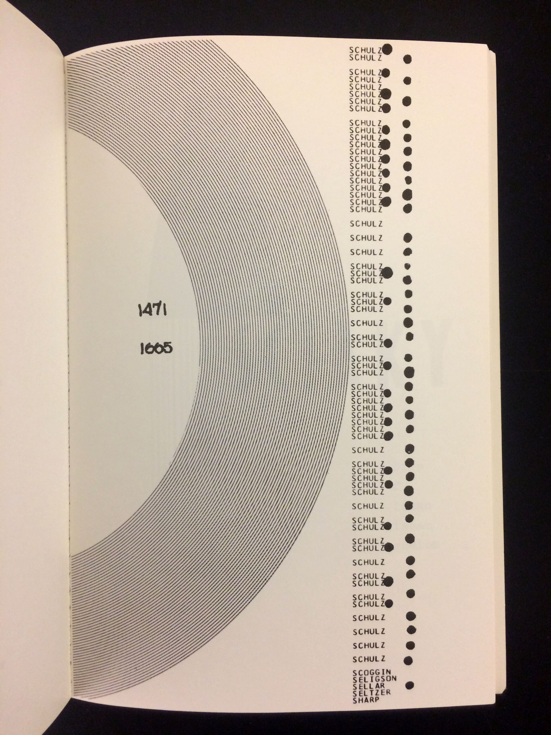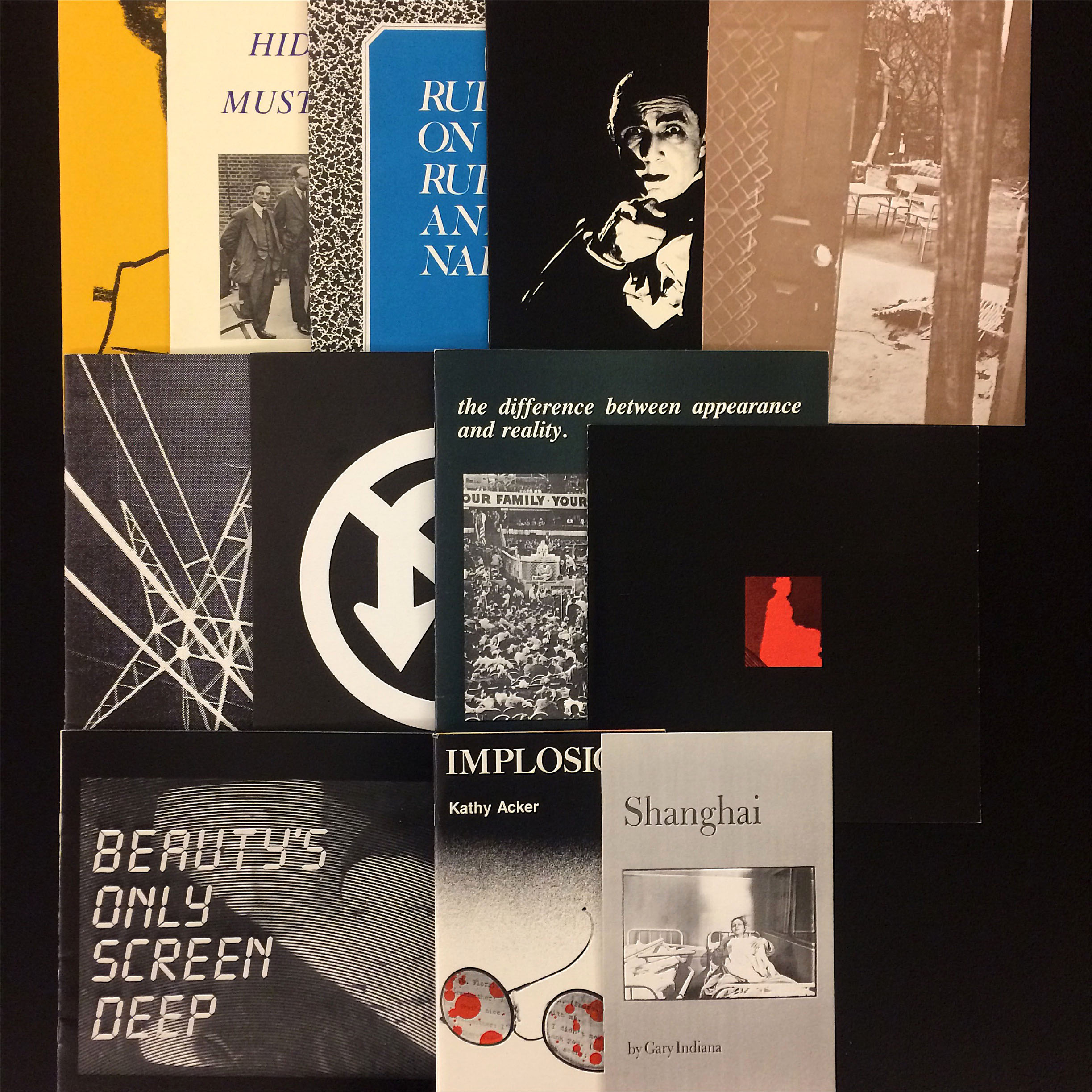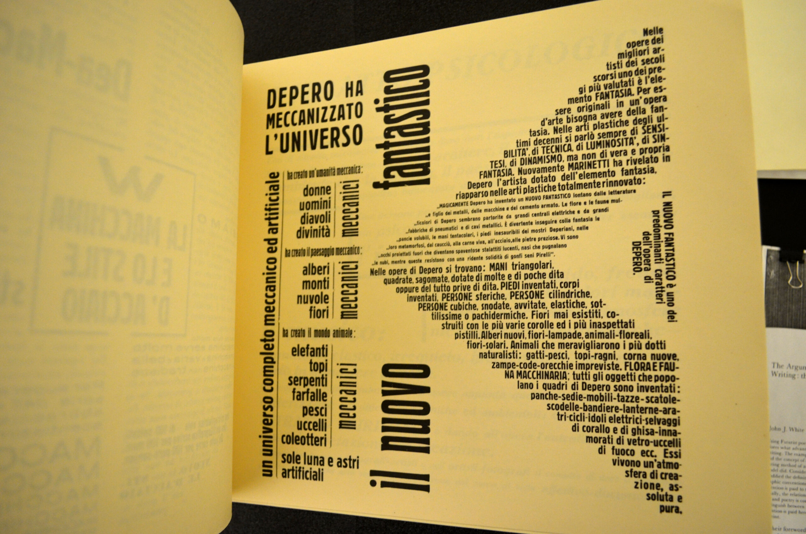 Works ranged from: a facsimile of Dada Zeitschriften; multiple works from Imma Gerlovina and Valeriy Gerlovin’s Collective Farm project; George Brecht’s Water-Yam; a facsimile, translation, and original copy of Vladimir Mayakovsky and El Lissitzky’s For the Voice; Fortunato Depero’s Depero Futurista;—to—Barbara Kruger’s No Pleasure in Progress; Dieter Roth’s Picadilly Postcards; Margaret Kaufman and Claire Van Vliet’s Aunt Sallie’s Lament—to—Bern Porter’s The Manhattan Telephone Book, and multiple works from Wedge Press and Assembling.